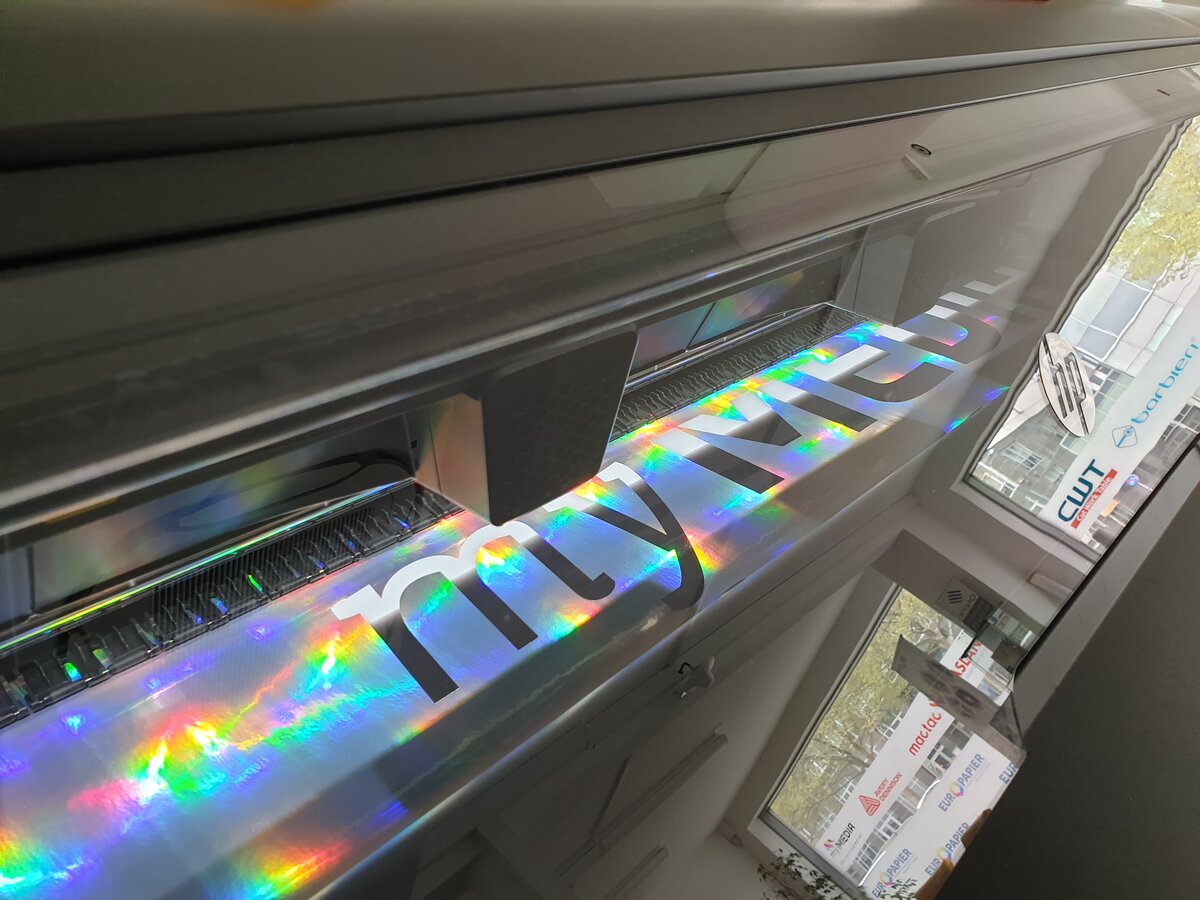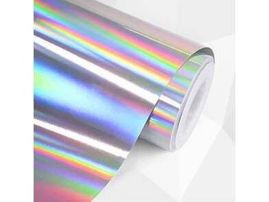 myMEDIA 7560 Rainbow Holographic je srebrna PVC folija s hologramskim efektom koja svjetluca u duginim bojama. Pogodna za ravne površine, nudi atraktivne grafike za POS, izloge i izložbe.