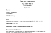 - Protupožarni certifikat DIN EN 13501-1