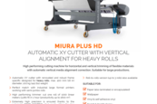 Flexa Miura Plus HD je visokoučinkovit automatski XY rezač dizajniran za precizno i brzo rezanje fleksibilnih materijala s rolne na listove. Opremljen je rotirajućim samooštrećim noževima za uzdužno i poprečno rezanje, automatskom vertikalnom korekcijom reza i intuitivnim LCD touchscreen upravljačkim sučeljem. Tri načina rada (automatski, poluautomatski i ručni) pružaju fleksibilnost u različitim proizvodnim scenarijima. Miura Plus HD je idealan za obradu materijala poput PVC bannera, samoljepljivih vinila, tapeta, fotopapira i drugih fleksibilnih medija.